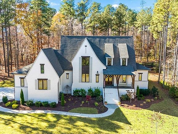 Welcome home to this exquisite custom build in the wonderful community of Camberly in Wake Forest. Every detail in this home has been carefully curated to create a residence that transcends the ordinary. Delight in awe-inspiring height of the ceilings, the gourmet chef's kitchen, and the expansive living areas adorned with floor-to-ceiling windows, allowing natural light to cascade in. The master suite is a sanctuary of indulgence, featuring a spacious layout, a private sitting porch, and a spa-like ensuite bath. Nestled on a sprawling 1.55-acre oasis, this property is a nature lover's dream. Embrace the tranquility of a yard adorned with mature trees, creating a haven of privacy and seclusion. Golf enthusiasts have a reason to celebrate too! Here, you can perfect your putting skills amidst the privacy of your own yard. This is not just a home; it's a statement of refinement and elegance. Schedule your private showing today!