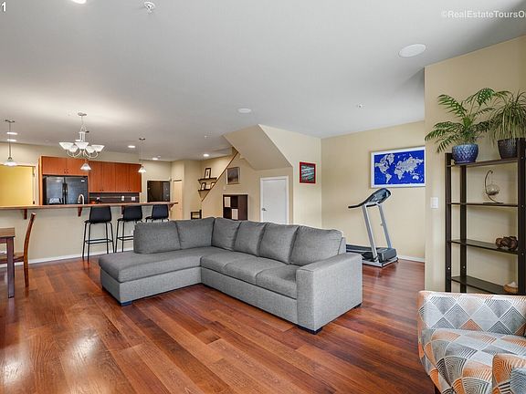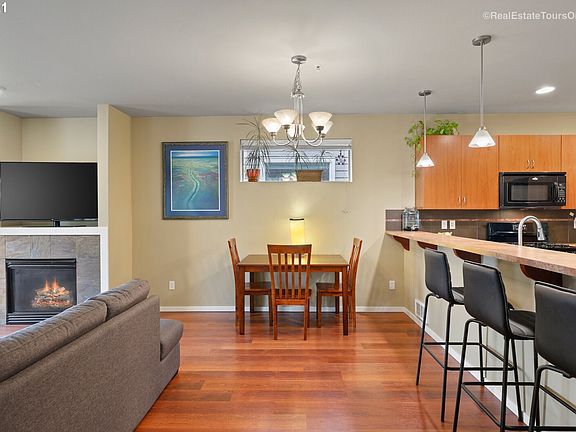 Contemporary St. Johns two story condo. Main level has an open floor plan, wood floors, gas fireplace and access to a private balcony. The kitchen has an extended eating-bar and there is a closet under the stairs for storage. Primary bedroom suite, 2 additional bedrooms, full bathroom and laundry area can be found on the second floor. Blocks from Forest & Cathedral parks, downtown St. Johns, transit & local eateries.