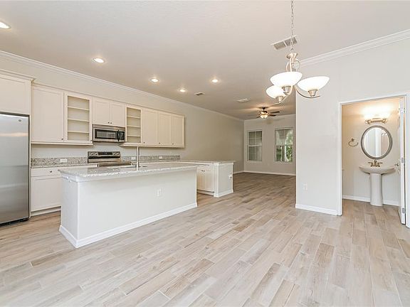 This well-appointed 3-bedroom, 2.5-bath townhome in the desirable Lake Burden community features fresh interior paint and beautiful flooring throughout the main level. The open kitchen offers a breakfast bar and island, painted cabinets with glass doors for added character, recessed lighting, and ceiling fans. Crown molding in the living and kitchen areas and elegant arched doorways add timeless charm. Enjoy outdoor living on the patio, plus the convenience of a 2-car garage in this thoughtfully designed home.
