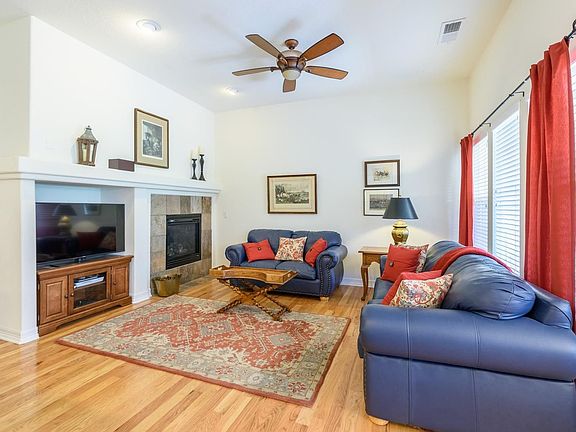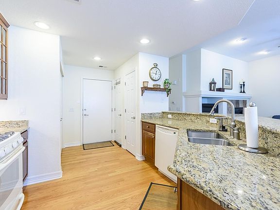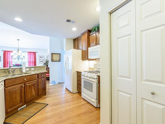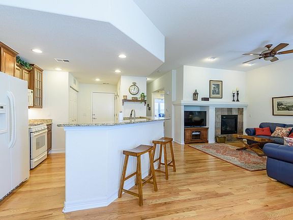 Move-in condition unit loaded with upgrades, backs to greenbelt in highly desirable Heritage Eagle Bend! Enjoy resort-like living in this gated community for 55+! Hardwood floors in living room, kitchen, dining area and secondary bedroom. Slab granite counters and upgraded cabinetry in kitchen. Beautiful master suite with vaulted ceiling, 4 piece bath with tile counters and walk in closet. Enjoy the serenity of the back patio on the greenbelt. Incredible condition, very gently lived in. Large crawl space with ventilation fan.washer and dryer included.