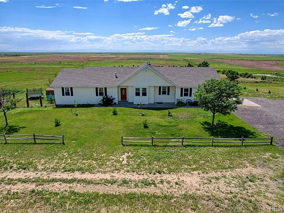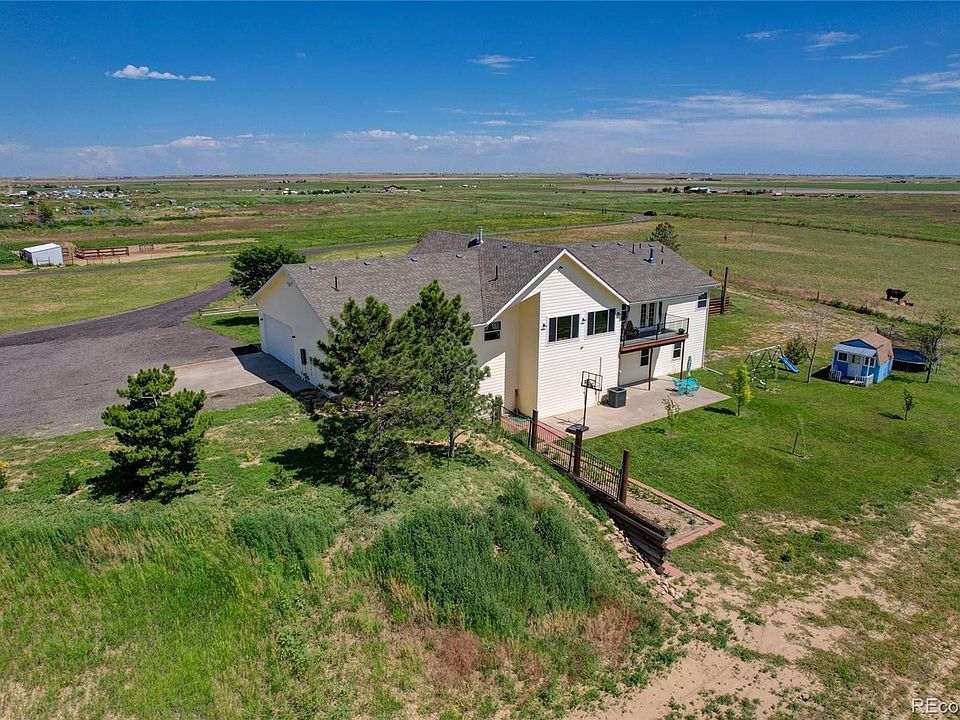 Welcome to your dream home in Bennett, whether you want horses and animals or just LAND outside of the city. This 42 acre home site is truly a rare find. FANTASTIC opportunity for those wanting an INCOME PROPERTY as it has a walkout basement with laundry hookups, bedrooms and bathroom. This stunning property has undergone extensive renovations, making it the perfect blend of modern comfort and breathtaking views. The house boasts numerous upgrades, including new windows, exterior doors, and trim, ensuring a fresh and inviting atmosphere. You will be captivated by the panoramic views that surround this home, providing a constant reminder of nature's beauty only miles away from the city. With its convenient location, you'll find yourself just 25 minutes away from both Denver and Denver International Airport (DIA), offering easy access to urban amenities and travel opportunities. Bennett is a largely growing area so you will surely find shopping and restaurants nearby. The basement of this home is a standout feature, offering a walkout design and a large man door. This flexible space can be utilized for storage or transformed into a spacious open concept entertaining area, making it an ideal setting for hosting. The primary bedroom features a brand new private deck, 5 piece bathroom and dual sided fire place. Updates throughout the house include a whole-house AC system, new fencing and beautiful landscape including an orchard of plum and apple trees. The downstairs area has been renovated to include additional bedrooms, a bathroom, and a game room, expanding the living space and accommodating various needs which include additional laundry hook ups. This driveway offers ample parking and a grand entrance to your beautiful home with flowers, trees (front and back irrigation). With its stunning renovations, picturesque views, convenient location, and spacious layout, it provides the perfect backdrop for a peaceful life.