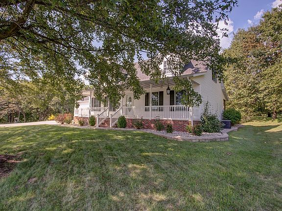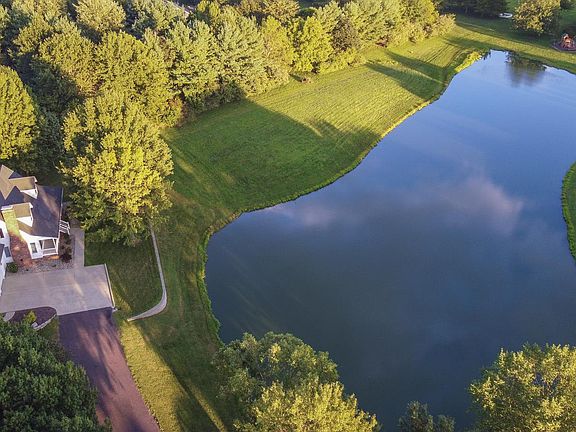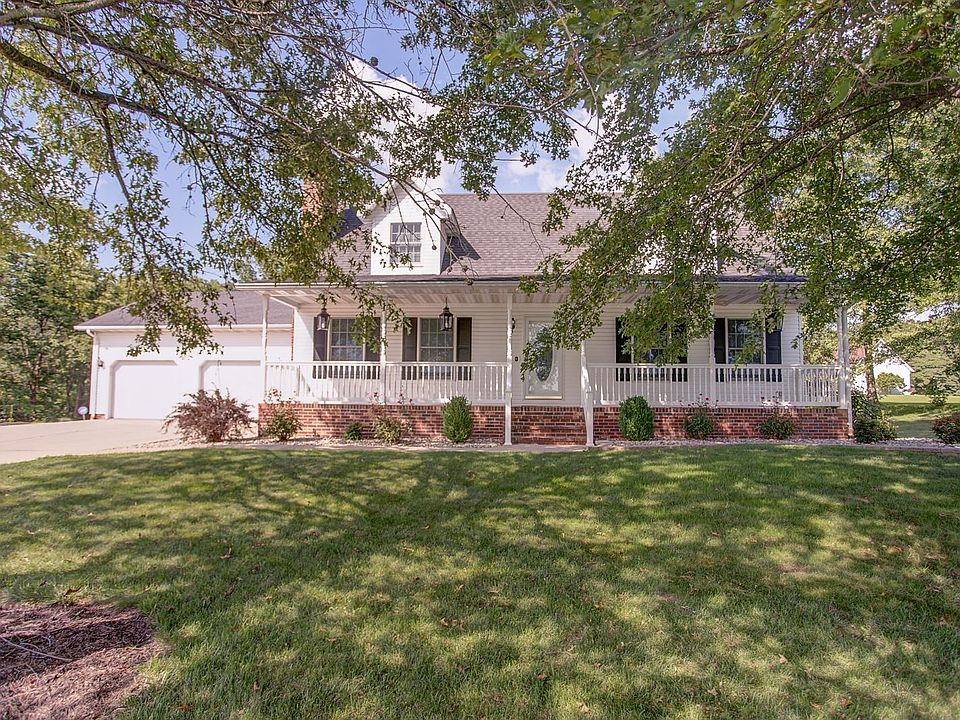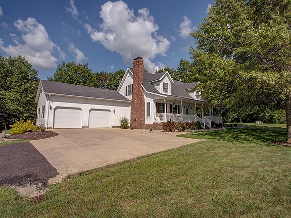 Enjoy this retreat like setting just right outside of town! Beautiful home nestled on 5 wooded acres w/ a lake & second garage! Imagine sitting on this huge front porch overlooking the lake drinking your morning coffee. Foyer entry has hardwood floors & living room boasts a wood burning fireplace. Main floor master bedroom & bath which has walkin closet, dual sinks, separate tub & walkin shower. Kitchen & dining room combo leads out to back deck overlooking a parklike setting. Upstairs find 2 bedrooms & full bath. Downstairs 2 entertaining areas w/ one side having free standing fireplace, a huge bar w/ sink & wine rack. Also, full bath & storage area w/ builtin shelves. Walkout to a patio area nicely landscaped w/ retaining walls looking out into the woods. Entire house has beautiful woodwork & loads of closets. Main floor laundry w/ extra sink & cabinets. In addition to oversized 2 car garage, a 1,300 sq ft second garage thats heated & has hot water. Immaculate!