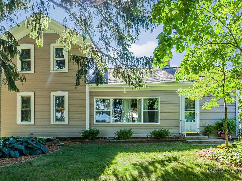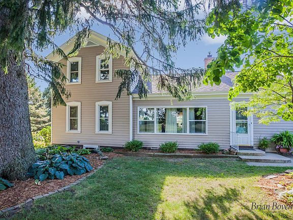 This beautifully maintained early 19th century farmhouse sits on 4 gorgeous rolling acres. Natural light flows into the living room which features beautiful views of of your private backyard. A convenient main floor laundry sits just off the kitchen. The focal point of the home is an incredible formal dining room which can accommodate the largest of family gatherings and features recessed lighting, beautiful crown molding and natural hardwood flooring. Also on the main floor is a full bath and a generous bedroom. The upper floor offers a stunning master bedroom with a vaulted ceiling, recessed lighting and exposed beams to give it a modern feel. The lower level features an additional bedroom and plenty of storage. On the property sits multiple outbuildings with a large pole barn.