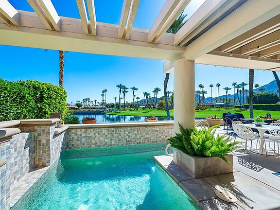 Professional photos coming Monday! Welcome to your dream home nestled in the prestigious Desert Horizons Country Club in the heart of Indian Wells. Prepare for awe-inspiring 270 degree views of mountains, a serene lake, and perfectly manicured fairways!This exceptional residence boasts 3 bedrooms in the main house. Additionally, a detached casita offers the convenience of a private retreat, complete with its own ensuite bathroom, perfect for accommodating guests or creating a serene home office space.Prepare to be captivated by the newly renovated kitchen, a haven for culinary enthusiasts. Marvel at the pristine quartz counters, sleek updated white cabinets adorned with modern hardware, new stainless steel appliances. The kitchen's strategically positioned windows offer breathtaking southern views of the majestic mountains, while the sliders seamlessly connect to the expansive patio, boasting multiple entertaining areas and a private spa. Soaring ceilings and walls of glass, effortlessly flood the space with natural light. The primary suite serving as your personal sanctuary. Pamper yourself in the luxurious ensuite bathroom, revel in the spacious walk-in closet and a second separate 2nd closet. Unwind everyday enjoying your stunning view of the lake on the 18th hole. Desert Horizons has a newly remodeled clubhouse. Amenities include a world-class golf course, sports pavilion, dining & fitness