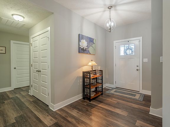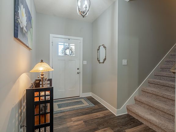 Gorgeous, like new 3 bedroom home on Evansville's Eastside! This home features an open concept layout and luxury vinyl plank throughout the home and primary suite. Upon entry you'll find a proper foyer that adjoins to the Great Room. The Great Room has tray ceiling and is open to the Kitchen. The Kitchen has a dining area, stainless steel appliances, granite countertops, huge breakfast bar island with a built in sink, tile backsplash and beautiful white cabinetry. The Primary Suite is very spacious, has an en-suite bathroom with a double vanity, nice tiled shower and walk-in closet. Additional bedrooms are carpeted, a good size and each have walk-in closets. The additional full bathroom has a tub/shower combo and a linen cabinet. The large Bonus Room is located just above the garage and could be used as a 4th bedroom. The Laundry Room has cabinetry and a folding counter. There is a built-in "drop zone" and a large pantry with a barn door just off the garage making unloading groceries a breeze. In the backyard there is a covered patio, complete with a ceiling fan making it a great place to relax, rain or shine. This property also has an additional open patio, gorgeous flower bed, storage shed and a vinyl privacy fence.