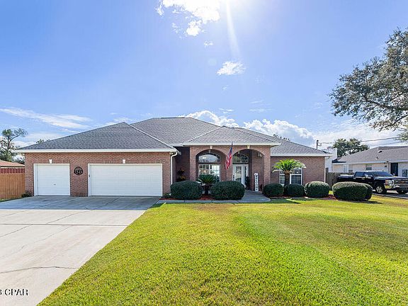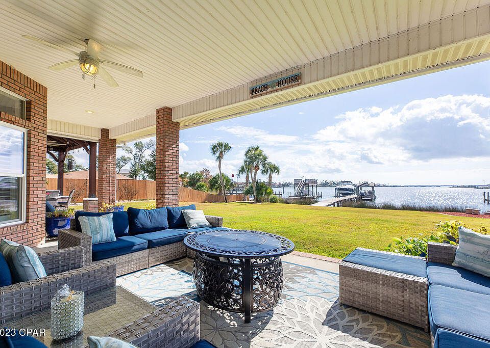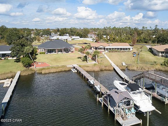 ***Currently under contract, with 72 hour kickout clause, taking backups*** Superior waterfront living in this tastefully upgraded Callaway brick home close to Tyndall Air Force Base! You are greeted by expansive ''big water'' views the moment you walk in the front door into this open concept home complete with 10 foot ceilings, crown moulding, arched doorways, and custom built in entertainment center with electric fireplace! The kitchen with a massive commercial sized refrigerator and dining room with large bay window both offer beautiful water views as well. Just as in the main living area, the master bedroom features large, accordion style sliding doors for breathtaking views and outdoor living at it's finest! Step out on to the covered brick patio and take in the views from your back porch under two gazebos as you overlook your beautifully landscaped yard or walk out to your 3 tiered dock to take in the sunset. A true boater's dream, this property's dock allows for deepwater (10 ft) access with a 14 foot wide, 20k lb boat lift as well as two jet ski lifts and additional jet ski space also. An upgraded seawall will keep the water where it belongs and flood insurance is not required! The large backyard leaves plenty of room for a pool if desired for additional fun. After sunset, retreat to your master bedroom and press a button and watch as your custom blinds descend over the windows, shut your plantation shutters and enjoy a peaceful night's sleep! Make sure to bring all your belongings as this home boasts ample storage in the custom laundry area as well as large 3 car garage complete with additional heated and cooled storage room. Schedule your private showing of this exquisite home today and experience unparalleled waterfront living with everything it has to offer!