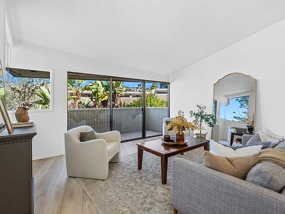 Welcome to this bright and airy end unit haven, perfectly situated in beautiful Carlsbad. This 3 bed 2 bath oasis (2 bedrooms plus a flexible office or bedroom space) combines light, natural beauty and location perfection! Enjoy easy mornings on your sunshine-filled balcony with lush plants and birds chirping, only a short distance away from shopping, world class resorts and clean sandy beaches. This spacious floorplan has huge windows that bathe the home in natural light & views of the green rolling hills of peaceful La Costa and close to Omni Resort, Spa and Golf Course. The kitchen is perfect for entertaining, with new appliances, ample counter space and an adjacent office/bedroom ready for either work or relaxation. The open floor plan flows seamlessly from the kitchen, dining and living areas to the private lofty balcony, perfect for enjoying serene views and fresh air amidst the leafy trees. When you are done for the day, you can retreat to the main bedrooms and bathrooms that are thoughtfully tucked away in a quiet part of the home, away from the living area. The two-car garage adds security with ample storage space and the in-unit laundry is tucked away and convenient. This townhome community is designed for tranquility and privacy, with a gated courtyard that is meticulously landscaped with tropical plants, creating a lush, resort-like atmosphere. With its excellent location, close to dining, shopping, and beautiful golf course, this home offers a rare opportunity for bright, comfortable living in a wonderful neighborhood. Situated within the highly-rated Encinitas school district, you’ll have access to some of the best educational options in North County San Diego. Come take a tour today!