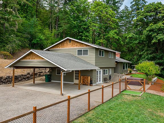 Private property located on hilltop acreage, south facing valley views and massive 48x36 shop with 14ft RV doors, 220v power. This home is a tri-level 4bed/3bath with cable Internet and TV. Newer stainless appliances and washer/dryer. Open concept kitchen/living/dining area. Hickory cabinets with slab granite countertops. Fenced yard. Fruit producing trees in a parklike setting. Hagg Lake just minutes away! 30 min to Nike and Intel. Live close to amenities while having your own slice of country.