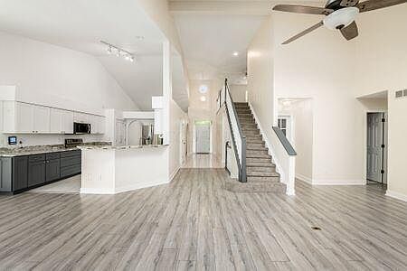 Step inside to a bright, open layout with soaring ceilings, anchored by a spacious great room—perfect for entertaining.in. The heart of the home is the newly renovated kitchen, thoughtfully designed with brand-new cabinetry, gleaming granite countertops, and stainless steel appliances. Whether you're cooking for two or ten, this kitchen is as functional as it is beautiful.