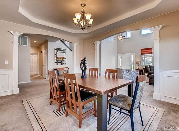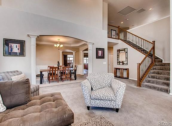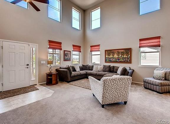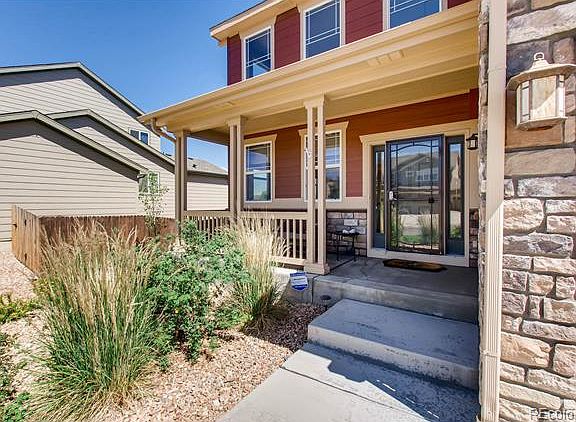 Welcome to this remarkable home in King Ranch Estates! After passing through the charming front porch, you are greeted by a two-story living room flooded with natural light that will take your breath away. The formal dining room leads to the open kitchen that features granite counters, gas cook top, double oven, island, and pantry. The open floor plan leads you through a casual dining room and family room with gas fireplace. The main level also boasts a bedroom and full bath - making it perfect for guests! Head upstairs to find a spacious master suite with tray ceiling and en-suite 5-piece bath with walk-in closet. Three large bedrooms, two full baths, convenient laundry, and a welcoming loft complete this upper level. The unfinished walk-out basement is just waiting for your finishing touches! Step outside to the magnificent fenced-in backyard, complete with playground and stamped concrete patio. Less than a block to beautiful King Ranch Park, and easy access to I-76 and E-470!