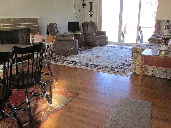 3 B/R 2 Bath Vinyl Sided Ranch with 2 Car Attached Brick Front Garage. Central Air, Two WBFP. Beautifully appointed in freshly painted neutral colors. Hardwood floors, Updated kitchen (with Maytag wall oven unit, Roper cooktop & GE refrigerator). Large yard. All 3 B/R have ceiling fans, Levelor blinds in all main floor rooms except the kitchen, whole house exhaust fan, Finished basement features beautifully paneled rec room (or family room) with wet bar, a second WBFP, and a bonus room (could be 4th BR). Utility room has kitchen facilities -- Whirlpool gas stove, Frigidaire refrigerator, Whirlpool Washer, and Kenmore Dryer. Second bathroom has toilet, sink and shower stall. Glass block windows further enhance the basement. For the last ten years the residents have used this gorgeous basement as an in-law suite. Barn type shed to store your outdoor equipment.
