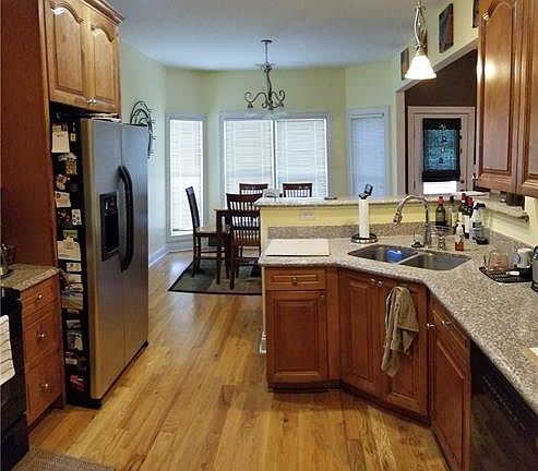 Quality, gorgeous custom home on just under an acre in lovely country setting. NO HOA! Beautifully appointed with custom paint, granite counters thruout, 42" oak raised-panel kitchen cabinets, stunning hardwoods. Great room w/ soaring ceiling, gas log fireplace, hardwoods. Split bedroom plan with spacious master suite, double coffered ceiling, luxurious master bath with large garden tub, separate shower, dual vanities, granite counters, & walk in closet. Breakfast area w/ bay windows(tinted), arched doorways throughout, formal dining room w/ chair & crown molding. Hall bath has double vanities & granite counters. Beautifully landscaped level lot with Crepe Myrtle trees, Gala and Pink Lady apple trees, garden w/ prolific Ft Laramie strawberries. Large concrete patio in back w/ custom brick outdoor fireplace for entertaining. Back yard enclosed w/ split rail fence. Energy efficient window tinting & attic fully treated w/ closed cell foam insulation. Elec. bill averages only $130/mo!
