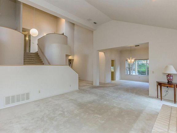 One of a kind Royal Coach custom built home by Rich Riley. This well-maintained modern classic has an expansive floor plan of neutral tones, high ceilings, glass, & custom white oak cabinets throughout. The kitchen is complimented with SS appliances, double ovens, Chambers gas stove. LR, FR, formal DR & an isolated bedroom w/bath downstairs. A curved staircase takes you to an open mezzanine and an office. Upstairs, you will find the master suite and 2 additional bedrooms and bath. Landscaping has curved brick planters, pool w/cascading waterfall, beautiful trees and shrubs, and large patio. 3-car gar includes a large enclosed storage room. Original owners say this home is ready for new owners. Priced to sell.