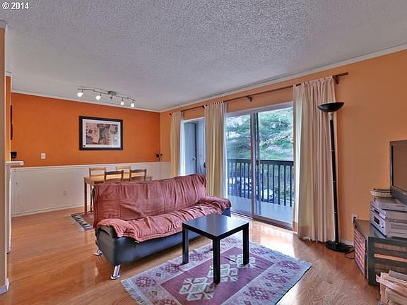 One bedroom/one bath. Laminate wood floors in LR/DR, kitchen, bedroom. Tile floors in bathroom. Wd burning FP. Newer cabinets, all appliances included. Deck off LR/DR includes walk in storage. Carport. Sylvan Heights is located 10 minutes to downtown PDX & 5 minutes to Beaverton.Amenities include clubhouse w/ party room, kitchen, workout room, spa & pool. Tennis courts just down from unit. Owner will sell furnished. One yr home warranty