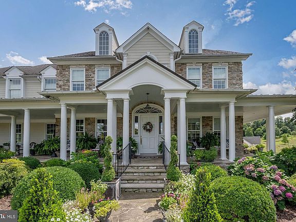 Pre-appraised! Striking the perfect balance of supreme privacy and ease of accessibility, this 21-acre sanctuary will ensure a lifestyle with abundant space to gather with friends and family with room to spread out and take in the bounty of a serene pastoral setting. This impressive luxury residence and private detached guest house is surrounded by majestic gardens, parterres, arbors, a tree-fringed park, glistening pond, creek, and green pastures that are both tranquil and arrestingly beautiful all at once. The main house offers 5 bedrooms, 5 full baths, 4 fireplaces, two laundries and a fully equipped in-law/guest suite in the walk-out lower level with 10'-ceilings and large south facing windows framing spectacular garden views. The master plan and amazing gardens were designed by renowned landscape architect Charles J Stick. Live, play and work at home with the luxury, seclusion, and the flexibility of a detached private office set up for two gracious work stations, a kitchenette and sitting area with powder room. The detached structure is also outfitted with a separately zoned HVAC and the versatility of a beautifully finished upper level with full bath that could be a groundskeeper suite or guest house. With quintessential charm, a bank barn from the 1800's with water and electric still presides over four board-fenced pastures offering auto water and could accommodate your treasured horses or livestock. Consistently named one of America's top small cities, Frederick is a vibrant place full of art, food, boutique shopping, history, beautiful parks, a full calendar of public events, top public schools, minor league baseball, and more. The Frederick Airport is nearby for jet and helicopter service and transfers from three major airports. Just minutes from I-70 and I-270; about an hour from downtown DC. Come home to privacy, tranquility and an unforgettable bucolic setting.