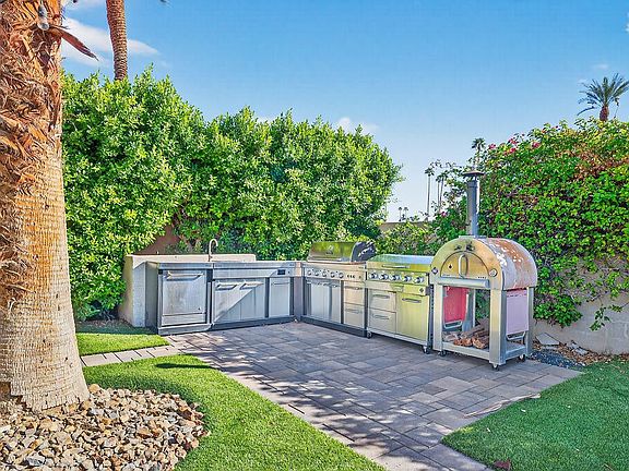 It has a resort style backyard that is built for entertainment, complete with bocce court/putting surface, full outdoor kitchen with 5 burner grill, flat top griddle, wood burning pizza oven, mini fridge, sink, fire table, private saltwater pebble tech pool. Please note that the pool is NOT heated.