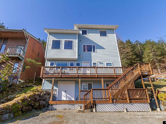 Douglas with a View! (See Virtual/drone video) Built in 1999, this beautiful single family home with an apartment sits high on 5th St with amazing views of Gastineau Channel, Sandy Beach and Mt. Roberts! The main house features 3 bedrooms, 1.5 baths, large mudroom entry, open kitchen floor plan, pellet stove, electric heat, 5 star energy rating, 2 decks, terraced backyard and views from every room! Also included is a 427 Sqr Ft work shop on the ground floor and off street parking for 4 cars. This home also features a 1 bed, 1 bath apartment that can be used for long term tenant or as a proven Airbnb! You won't want to miss your chance to purchase this modern, income producing lovely home in Douglas! Call today for a showing of your own!