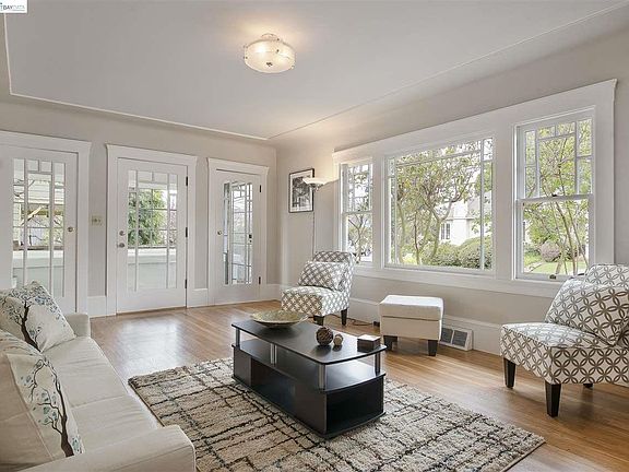 Bright 1922 classic bungalow in Bushrod neighborhood w/formal LR, DR, sweet kitchen & detached garage. Wonderful home w/refinished hardwood floors, many original details & built-ins. Enormous back yard, fenced for privacy. Driveway has plenty of off-street parking. Mins to BART, Rockridge, highways.