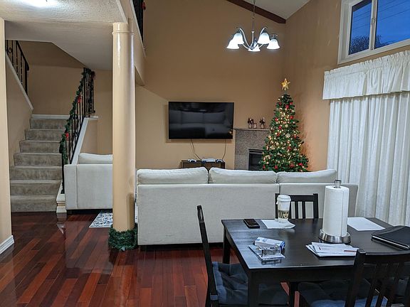 Apple Park, Cupertino - 3bedroom (2 master bedrooms), 2 bathrooms, big family room, and family dining area including 2 car garage - Updated and remodeled modern contemporary style, spacious and quiet home with 2050SF unfurnished home within a short walk to the Apple Computer Campus 2 in Cupertino. It's in the Cupertino highly distinguished schools, walking distance to Cupertino Village Ranch 99 Market store/restaurants/shops, and Ortega Park in Sunnyvale and Apple Park in Cupertino. It's quiet indoors with dual pane windows and wall insulations. It includes the following amenities: 1. 3 bedrooms with 2 large master bedroom suites (1 downstairs and 1 upstaiars). Both on-suite full bathrooms with vanity sink and counter-top bathroom and shared lock-out bathrooms. 2. Recessed LED lights in all the ceilings & 2 LED chandliers in living and dining areas. 3. 2 full on-suite bathrooms with shared lock-out full bathrooms and a 2nd vanity sink/counter cabinet. 4. Large living room with family dining area, 1 large family room/work space. 5. Remodeled kitchen includes new Granite counter tops, Stainless Steel Kitchen Sink with high arc goose-neck kitchen faucet, Garbage Disposal, Range and over the range microwave, quiet kitchenAid dishwasher. 25cf side-by-side refrigerator, and a small island with granite counter-top and drawers/cabinets. 6. Beutiful hardwood floor downstairs and carpets upstairs in all bedrooms. 7. 2 car garage with ample driveway parking(3 to 4 cars). 8. Covered front entrance and backyard patio with fruit trees in the yards. 9. Trane Central HVAC 16 Seer installed, keyless digital Yale + Nest smart lock & Nest Pro Thermostat controlled by wifi Android and iPhone Home App. 10. LG front load clothes washer and dryer. 11. Electric multi-ambiance fireplace with Remote Control in living room. 12. Laminate/hardwood floors downstairs. All bedrooms have carpets. 13. Lots of fruit trees in the big yards. 14. Covered front door porch. 15. Carbon monoxide detector and smoke alarm in downstairs and upstairs. 16. Plenty of linen closets in downstairs and upstairs hallways. Measurements : 1. Approximately 2050SF living space two story house. 2. Entry way exluding closet - 6'6" L X 5' W. 3. Living room and family dining areas - 26' L X 14.6"' W. & downstairs hallway - 15'6" L. X 3' W. 4. Family room - 15' L X 11' W. 5. Kitchen - 10'6" L X 10'6" W. 6. Laundry room and kitchen pantry - 8' L X 7' W. 7. Downstairs master bedroom suite - 24' L X 16' W. including closets & 1 large vanity/counter-top . 8. Downstairs master full bathroom - 8'6" L X 5'6" W. including 1 42" vanity/counter-top sink cabinet. 9. Upstairs mezzanine (L-shape) - 12' L X 3' W. & upstairs hallway - 15'6" L. X 3' W. 10. Upstairs large 2nd bedroom including closets - 19'6"' L X 14' W. 11. Upstairs master bedroom suite - 24' L X 16' W. including closets & 1 large vanity/counter-top. 12. Upstairs master full bathroom - 8'6" L X 5'6" W. including 1 42" vanity/counter-top sink cabinet. The top Cupertino schools are: * Stocklmeier Elemenatary School (10 minutes walk at Ortega Park) - (greatschools.org - test score 10/10) * Cupertino Middle School (~ 3 minutes drive) - (greatschools.org - test score 9/10) * Fremont High School (~ 3 minutes drive) - (greatschools.org - test score 8/10) Tenants to verify with schools. * All utilities are separate meters with its separate accounts with PG&E (Electricity & gas) and City of Sunnyvale (water, sewer, and garbage). PG&E bills monthly. City of Sunnyvale bills bi-monthly. * Application tenants credit check and screening is $45 per adult. Available after 01/31/2023. No pets, please. House tour is available now. Tenants are responsible for the PG&E and city of Sunnyvale utilities with their separate meters and separate accounts from PG&E and city of Sunnyvale. Available for move-in after 02/01/2023. House tour is available now.