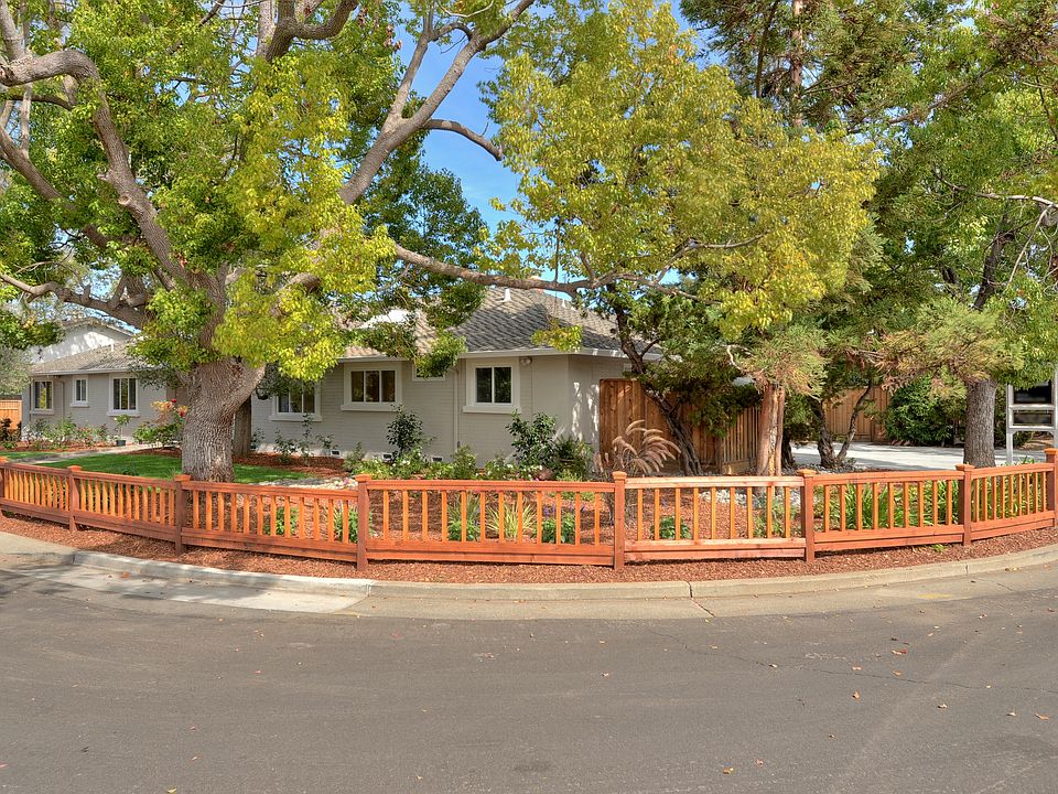 4 BEDROOM ; SEPARATE FAMILY ROOM ; OFFICE ; Welcome to this beautiful and light-filled one-level home on a spacious corner lot surrounded by gorgeous landscaping, two blocks away from Rancho Shopping Center. Flexible floor plan, living room w/fireplace flows into dining room. Chefs kitchen w/ towering skylight, a walk-in pantry, stainless steel appliances include a gas cooktop, double ovens. Inviting family room has a gas-log fireplace and access to rear deck and yard. Primary bedroom suite has custom cabinetry, outdoor access, and en suite tiled bath with shower.Office has a private outdoor entrance. Every room is bright and light with double pane windows, sliding glass doors, abundant recessed lighting. Attached 3-car garage, with one bay used as workshop with built-in cabinetry. Entertainers backyard has a larger deck with arbor-covered dining area, seating and lawn for indoor/outdoor living. Top-rated Los Altos schools minutes away...This is an ideal place to enjoy and call home!