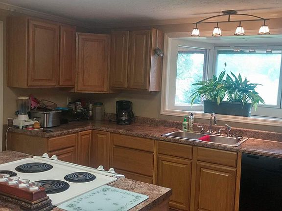 This lovely,completely renovated home is nestled on just over 1 acre of land which includes an extra large black-top circular driveway. Beautiful landscaping surround a cozy 260 Sq. ft. concrete front porch which includes a storage cabinet. Enjoy a wonderful large wrap-around deck complete with a decorative pond off the side and back of the home. Home comes with two storage sheds. This 1,820 Sq. ft. home has 3 bedrooms and 1.5 baths. Large newly renovated eat-in kitchen with appliances included. A separate laundry room comes with 2 large closets plus waher/dryer included. Master bedroom has large walk-in closet and private sitting room with sliding doors leading to private patio area. Master bath has large soaker tube and large shower.
