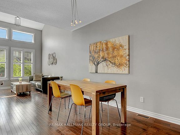 Open-concept main levelHardwood floorsPot lightsSoaring vaulted ceilingGranite countersCalifornia shuttersWood plank accent walls