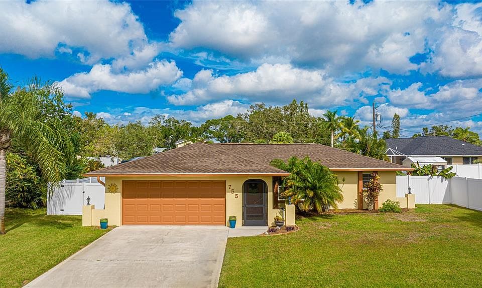 Welcome to this 2-bedroom, 2-bathroom pool home, a classic gem with a welcoming charm. Offering just over 1,300 sq ft of comfort, this home has been meticulously maintained and thoughtfully updated to create a warm and inviting atmosphere. Recent exterior updates, including fresh paint, a new roof, and a pool cage added in 2023, gives the home a refreshed appearance and added peace of mind. Inside, a practical split floor plan offers a sense of privacy. As you enter the home, the open living and dining area provides a space for relaxation and unwinding. The eat-in kitchen features stainless steel appliances, updated countertops, and resurfaced cabinets, making it a cozy spot for family meals. With bar seating and a view of the backyard, it's a lovely place for everyday living. The primary suite boasts a walk-in closet and access to the lanai through a sliding glass door. Adjacent to the kitchen, you'll find the second bedroom and bathroom, along with a convenient laundry room providing access to a two-car garage equipped with a new opener. Outside, the lanai features a covered area that's perfect for enjoying the outdoors while staying shaded. It connects seamlessly to the sparkling pool enclosed by a screen, providing a peaceful and enjoyable outdoor space. You will also discover a delightful setting with flourishing banana and lime trees, adding a touch of tropical beauty to the surroundings. Additional updates include the well and pool pumps, updated flooring, and the recent septic system maintenance in October 2023. Centrally located, this home provides convenient access to nearby shopping, dining, golfing, and the stunning Gulf beaches, making it an ideal combination of comfort and convenience.