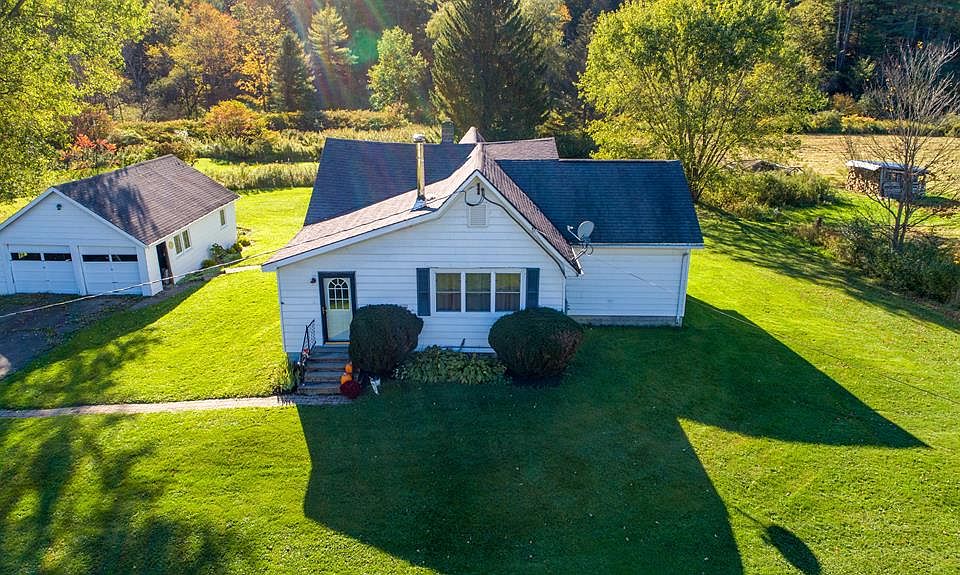 This adorably updated ranch on just shy of 30 acres, has 3 bedrooms and 2 full bathrooms. Relaxing views of the stream, woods, and fields out back. Updated electric, new carpet, new water tank and pump in 2018, and new windows in 2008. This home has been completely refreshed throughout, to make it totally move in ready. There is a detached 2 car garage with a new door. A chicken coop with fenced area and it's own well. A wood stove in the living room has meant low cost heat, and the furnace has barely been used, so it is still like new! 23 acres of wooded land to use to heat your home for free