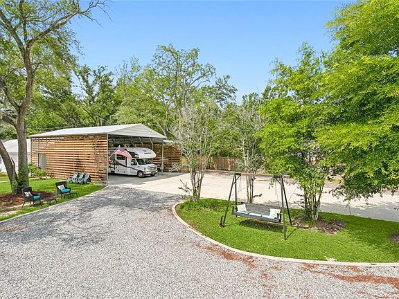Elegant renovation 4BR/3BA. Front veranda welcomes guests into this home. Situated on 1 acre lot w/20x44 garage/workshop area can be converted into an ADU/Guesthouse, 35x40 Carport w/ RV/Boat parking. Swim spa/hot tub (AquaSpa -20' x 8') sits right off of large patio. Open floor plan w/gourmet kit(stone and wood counter, prep sink, ice maker, gas range with two ovens, pot filler & 2 large pantries w/wood shelving. Living room and den are separated by French doors. Plenty of outside storage as well. Chicken coop located in private area. Seller currently has chickens and will leave for buyer if desired. Whole house generator. Truly a great home for entertaining. Laundry room is a dream w dog wash stall & hobby/ofc area (a portion of it could be an additional bedroom) Easy access to shopping & more. Currently on enhanced filtration well water. City Water is available. Flood zone C. Sellers gutted home after purchase and renovated and added onto it in 2022.