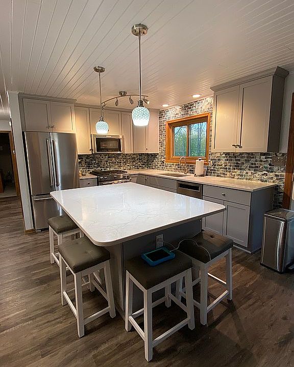 This great home has been lovingly maintained & is in exceptional condition. The open floor plan kitchen/great rm features a center island, new vinyl plank flooring, & gas FP w/antique mantle. There are 2 master suites for you to choose between, a full walk-out basement (w/ 2nd kitchen), & multiple living areas -- including a spacious screened porch, Trex deck, & huge lower level patio. Recent improvements include: new interior paint, new carpet, new vinyl plank flooring, water heater replaced in 2017, HVAC replaced in 2015, and dimensional roof put on in 2013. Located on over ?? acre with mature trees & a creek, it feels like a quiet retreat, yet is only a few blocks from the Greenwood Mall, city parks, restaurants, & entertainment.