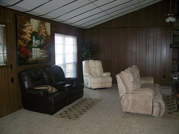 Quaint waterfront home on a gentle sloping lot. 3 bd/ 2ba large open living room w wood burning fireplace . Nice front porches on the front and back of the home. Dual slip boat dock with electricity. Gutters on front of the house 2015. Detached 2 bd/1ba guest house with new flooring and carpet and 3 workshops with electricity. Metal roofs cover each of 5 buildings except stand alone gazebo.