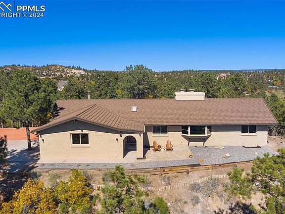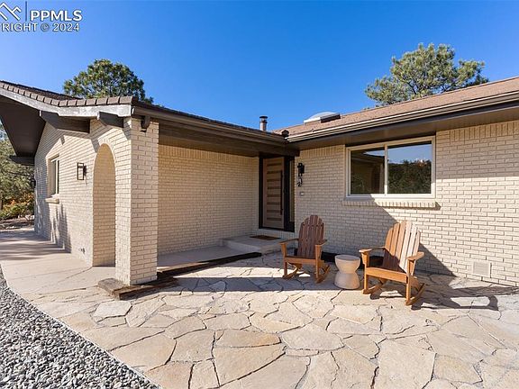 Welcome to this spacious & beautifully remodeled Ranch Style Home, perched atop the tranquil Discovery Community, offering views of Pulpit Rock & the Front Range! This home is a true sanctuary, designed w/ meticulous attention to detail & adorned w/ designer touches throughout. As you approach the home, you'll be greeted by a private front portico & large patio to the side, perfect for enjoying the serene surroundings. The entryway sets the tone w/ a striking contemporary front door, inviting you into a space where luxury vinyl flooring graces the main level, providing style and durability. Every corner showcases the thoughtful remodel, including new light fixtures, bathroom vanities, mirrors, interior doors, & hardware. The interior & exterior have been freshly painted, enhancing the home's welcoming atmosphere. The main level boasts an expansive living room w/ vaulted ceilings, & space for formal dining. A double-sided fireplace, shared w/ the kitchen, adds warmth & character to the living area. An open & bright kitchen features brand-new stainless-steel appliances, warm wood cabinetry, quartz countertops, an island for extra seating, & additional dining space. From the kitchen, step out to a large, covered deck, ideal for entertaining. The main level primary bedroom features a cozy fireplace, an en-suite bath w/ a spa shower, double vanities, & a walk-in closet. A bonus laundry closet adds convenience to this space. Additionally, on this level, 2 more bedrooms, ½ bath, & full bath. Heading downstairs, you'll discover a huge recreation room w/ a fireplace, wet bar, & additional cabinets for storage. This room walks out to a wonderful, covered patio. On this level, there are 3 bedrooms, ½ bath w/ a laundry room, & full bath. This home offers easy access to the Air Force Academy & I-25, making commuting a breeze. Conveniently located near Discovery & Ute Valley Park, Foothills Swim & Racquet Club, & shopping centers, adding to the appeal of this remarkable property.