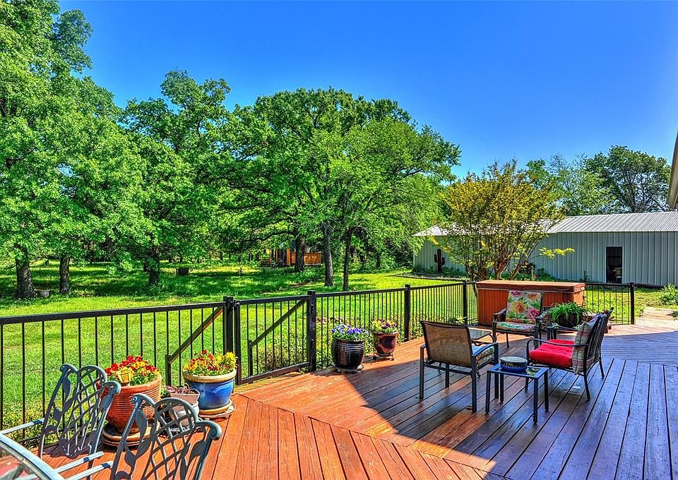 8 Acres of Lake Texoma living and this one has it all! Including a HUGE 80ft Shop and a 512 sq ft guest quarters apartment above the main garage area with a full bath and kitchenette. The oversized garage has an attached outdoor shower. This 4 bedrooms 3 bath home with an office is only a short distance to Highport Marina, Tanglewood Resort, and Lake Texoma. The main house is 3,016 sq ft with an owner's suite overlooking the huge back deck and beautiful private acreage. As a bonus, it has its own well water. Bring the horses, the boats, RV, the water toys, and your guests because there is plenty of room for everyone and everything! Come see why we love Living on Lake Texoma.