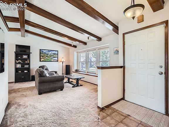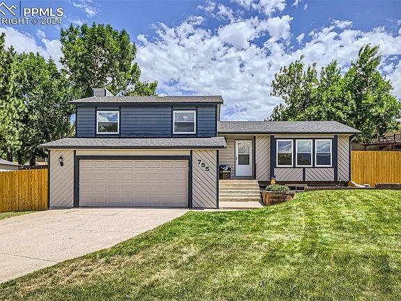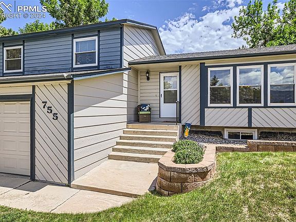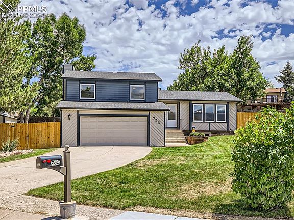 Well maintained Home on a Beautiful landscaped cul de sac/corner .23 acre lot. Enjoy view of Pikes Peak from the living room and front bedrooms, Entry opens to the vaulted wood beam ceiling's in the living room, with a large boxed bay window allowing plenty of natural light, Walkout slider door off the dining room, Efficient kitchen space with solid surface countertops, Upper level has the owners suite with 3/4 attached bath, 2 additional bedrooms with a full hall bath and linen closet, Walkout slider door off lower level family room with a full wall brick hearth gas log fireplace, A 4th bedroom or additional storage in the basement level with garden level windows allowing natural light in. Exterior painted 2 yrs ago, newer central air & high-efficiency furnace, Vinyl windows throughout, oversized garage, Beautifully landscaped, private back yard, rock walls, storage shed and deck. Close to Trails.