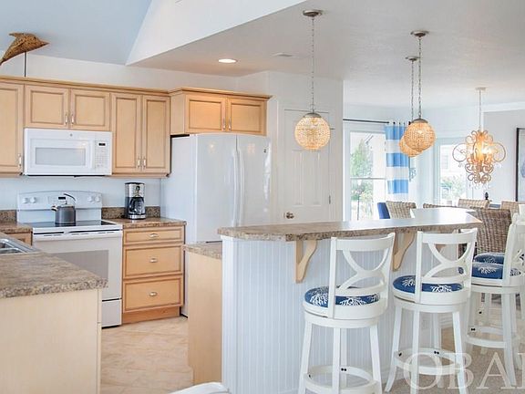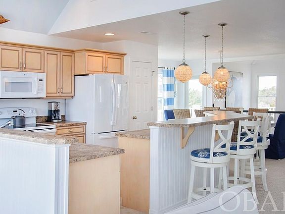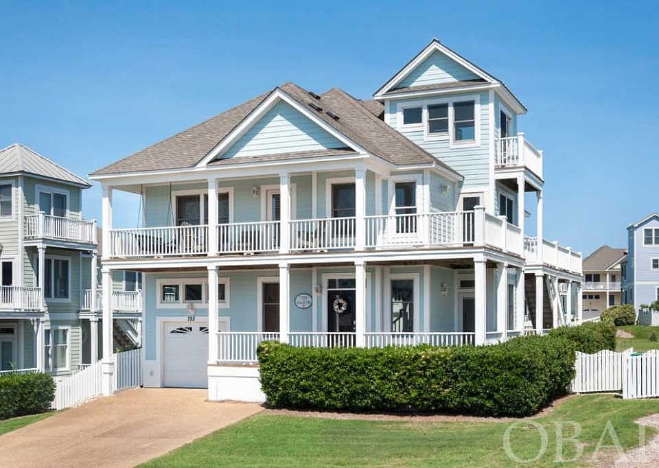 Beachy-chic and turnkey, this Hammocks home is ready for owners who want to be âLiving The Good Lifeâ. Situated with ocean, sound and golf course views, this comfortable 5-bedroom, 4.5 bath home has been meticulously cared for. The âCalypsoâ floor plan features 2 guest rooms, a King master en suite and full laundry area on the ground level. The screened porch, back deck, pool area and the garage (currently used as an extra game room) are accessed from this level. The mid- floor is comprised of open dining/kitchen/family areas, complete with cathedral ceilings, gas fireplace, large kitchen with breakfast bar and pantry, and lots of natural light. Additional features on this level include a powder room, access to outside sun decks, and a convenient master en suite with covered porch access. This spacious King master has a private bath with custom tile, double vanity sinks, garden tub, and separate shower. The top floor is dedicated as a bedroom retreat with hardwood flooring, full bath, small balcony and views of the ocean and sound. Not only is this cottage tastefully decorated, well maintained and neat as a pin, it is located in the desirable gated community of The Currituck Club with amenities such as swimming, health club, ocean access, trolley service, and more. Now is the opportunity to be âLiving The Good Lifeâ in this exclusive ocean to sound resort community.
