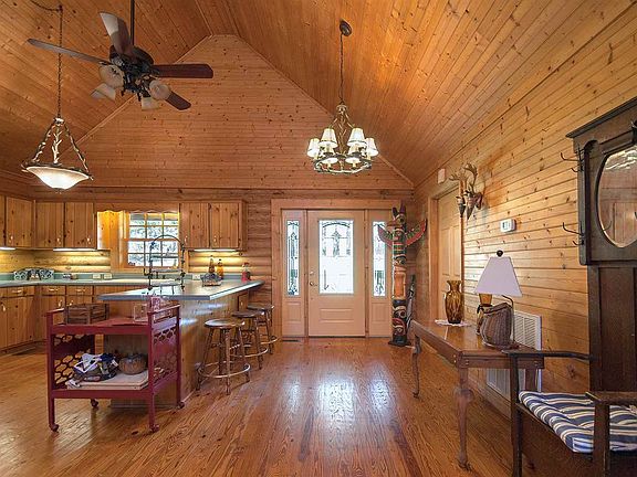 Inviting Log Home That's Been Freshly Painted And Beautifully Landscaped. This Property Boasts An Open Floor Plan With 5BR, 3BA On 4.3 Acres. Under Counter Kitchen Lighting, Separate Security System For Upstairs and Basement, Full Mother-In-Law Suite To Accommodate Disabilities, Phantom Screen Door System Leads Out To A 20x20 Reinforced Deck With Spa, Low Voltage Deck Lights, Gas Fireplace, Large Screened Porch With Ceiling Fans, Two Vehicle Custom Carport, Basement Has Gas Heater That Is Thermostat Controlled. It Also Offers A 12x24 Aluminum Outbuilding With Separate Electric, Fully Floored Garage Attic With Lights, Oversized Insulated Garage, Washer/Dryer On Main and Basement Levels, Extra Refrigerator In Garage, Seller Is Offering An American Home Shield Warranty.