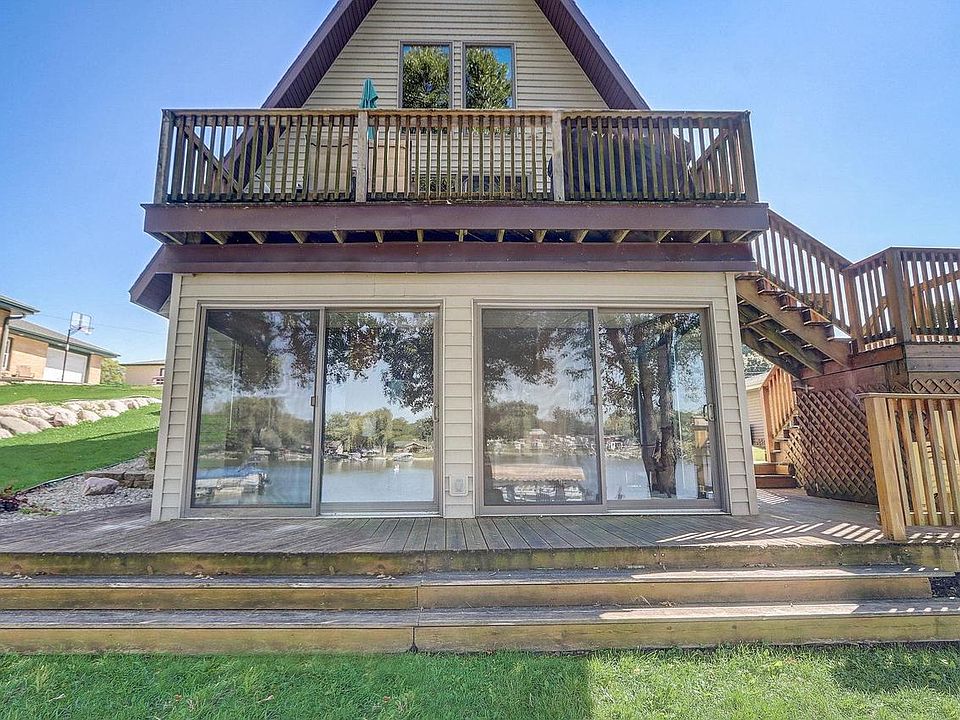 Amazing Opportunity! Either a turn key Airbnb, 2nd home or year-round residence. This incredible waterfront property is nestled in a highly desirable no-wake section of the river. An inviting great room is overlooked by a loft area that currently sleeps 10. Perfect for lounging or converting into a home office or entertainment space. The open-concept design seamlessly connects the kitchen, dining, and living areas with a back deck offering a great view. The lower level contains a bedroom, full bathroom, separate urinal in its own room, wet bar, rec room and 3-season sunroom that walks out to the backyard. An inviting firepit area provides a cozy ambiance for gatherings. 60 feet of river front includes a removable private boat dock. Car enthusiasts will delight in the 34'x35' heated garage.