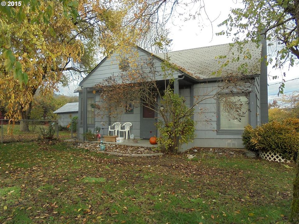 Charming 1220 sq ft, 2 level home situated on almost 2 acres of usable land. A rare find at the edge of town. Fruit trees, lots of raised beds for garden enthusiasts, out buildings, chain link fencing. There is a lot here for the money. Hurry!