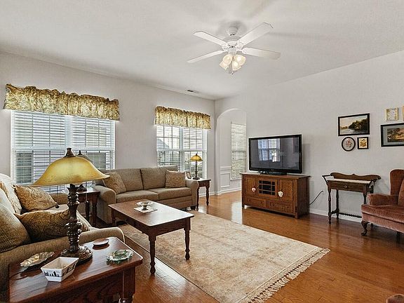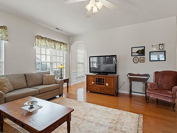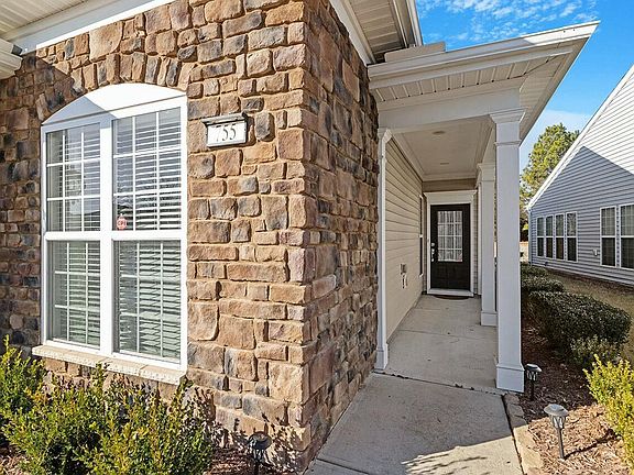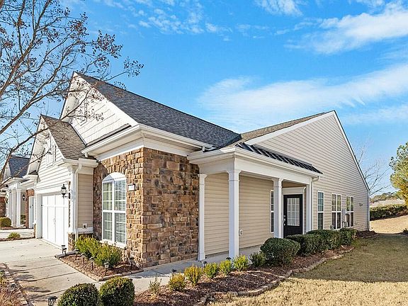 The marvelous Muirfield villa offers a well-designed floor plan that maximizes space for easy 1-story living. Upgrades include: newer roof (2021) *HVAC (2019) *water heater (2020) *screened patio with EZ Breeze windows *retractable remote-controlled awning over patio *granite counters in kitchen & bathrooms *newer frameless shower door in primary bath *gleaming engineered hardwood floors throughout (no carpet) *stacked stone exterior accents. But wait until you see the gorgeous expansive VIEW of nature and rolling hills from your screened patio! Enjoy being steps away from a neighborhood park as well as having access to world class amenities including indoor & outdoor pools, tennis, pickle ball, gym, tennis, bocce. Book a tour to experience for yourself all of the benefits of living in Cary's premier 55+ active adult community.