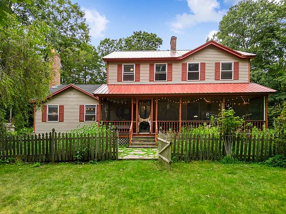 Welcome to your serene wooded home in Andover! This charming colonial offers a spacious layout, perennial gardens, and fruit trees on 5.98 acres. Step inside through the screened farmers porch, the perfect spot to relax on summer nights, into the entryway with wide pine floors that flow into the dining room. The kitchen is truly the heart of the home, nestled between an oversized mudroom, and a spacious living room with cathedral ceilings and floor to ceiling brick open-hearth fireplace as the room’s centerpiece. A 1/2 bath with laundry rounds out the first floor. Upstairs, a full bathroom is nestled between two bedrooms. The third bedroom, a spacious primary suite, includes an ensuite with an oversized jetted tub and a standing shower – your private retreat to unwind. The full basement adds versatility to the home, with another wood stove and ample space for utilities and storage. There’s also an additional outdoor wood furnace and a whole home reverse osmosis water filtration system. This property offers the perfect blend of tranquility and convenience, on the same street as Veterans Memorial Ski Area and just up the road from Franklin's newly revitalized downtown. Embrace the outdoors with miles of trails directly accessible from your backyard as well as a quick drive to the Rail Trail, Highland Lake, and New England's 1st whitewater park! Offer deadline: Tuesday 8/1 at 3pm