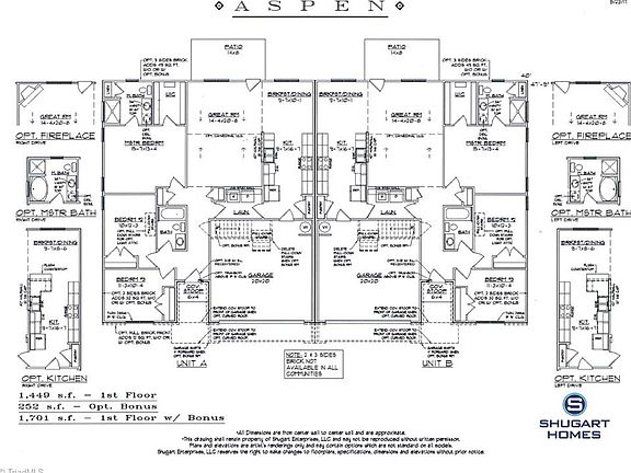 Aspen plan being built by Shugart Ent. w/ 9' ceilings, transom above front door, brick ledge, option kitchen w/ L shaped bar, double bowl full vanity in master bath, corner fireplace, comfort height toilet in master bath, roman style interior doors, 36" wall kitchen cabinets in Kent flat panel birch, granite countertops in kitchen, wood floors in hallway & foyer, & ceramic tile backsplash in kitchen w/ deco band. Tax value & taxes not yet updated. Dimensions taken from floorplan. $8,000 in incentives.