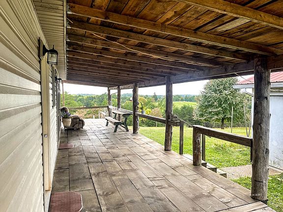 9.93 acre home with some of the best country views.. Located just a few miles away from the Ohio River, this 9.93 acre home has some of the best country views you could ask for. With tons of road frontage you will still be able to enjoy the beautiful green fields all while sitting on your large covered porch. The 3 bedroom, 3 bath home on the property has been well taken care of and is move-ready. The home features a large living area with knotty pine ceiling and large windows to enjoy the views, a spacious kitchen and dining area, and the hall is a large owner's suite with full bath and walk-in closet. The additional bedrooms are also large. Big two car garage and plenty of woods and fields to ramble.