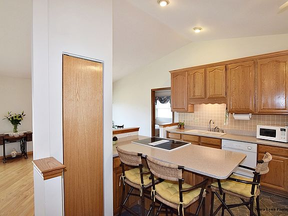 Fantastic ranch home nestled on a quiet street! Foyer with vaulted ceiling welcomes you! Kitchen with island boasting seating area, silestone counter tops & abundant cabinetry. Living room and dining room with vaulted ceiling and hardwood floors. Living room offers slider door to gorgeous, large concrete patio & fenced yard. Master bedroom with private bath & walk in closet. Spacious, finished basement with expansive recreation rm, bonus rm, bath & large laundry rm. Recreation rm is the perfect area to relax and entertain! Plenty of storage! Enjoy the sounds of nature from your patio! Two parks with playgrounds within 2 short blocks of this home! Great condition and convenient location!