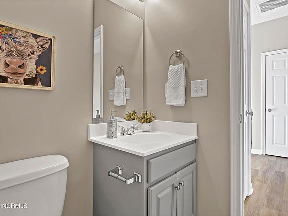 The second floor hosts three bedrooms and a versatile bonus room, all adorned with plush new carpeting. Bathrooms boast refinished vanities with cultured marble countertops, adding sophistication to daily routines.