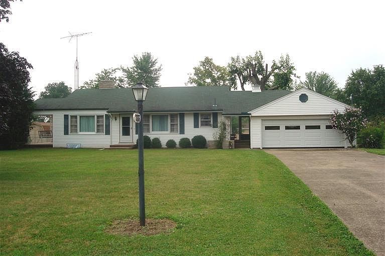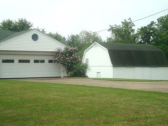 Great ranch property with a full basement located on a lightly traveled country road. Sits on one acre with a two car attached garage, a 36x24 outbuilding, covered side porch and covered breezeway. Double wide concrete drive with a turn around. Beautiful lot with mature trees (including some fruit trees), and a small creek to the rear. Update include heat pump, siding, gutters, downspouts, carpeting, kitchen, and partially updated main level bath. Boiler furnace believed to be approx. 11-13 years old. Newer water softener (2011). Two wood burning fireplaces. Lower level offers a large rec area with stove insert at fireplace, full bath in laundry area, and a storage area with built in shelves. Garage has a grease pit, and the outbuilding has a loft, electric, water, concrete floor, and small area without concrete possibly for an animal. Breezeway ceiling and all soffits are of stained cedar. Taxes are homestead. Actual taxes are $1050 per half.