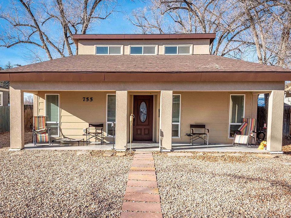 Newer Contemporary Home in Downtown Delta. This 3 bed 3 bath home features 2 master suites located on the upper level. The main level features beautiful stamped concrete floors . A "Large Great" room greets you as you enter through the front door! Living room on one side and dining on the other. The kitchen offers bar sitting, a nice sized bedroom and another full bath rounds out the main level. Attached oversized 1 car garage with washer and dryer hookups. Detached 2 story shed/shop is located in the back. The shed/shop has electric on the lower level but not up top. Privacy Fenced backyard with access from the alley. Covered front porch with low maintenance landscaping. Building of the house was started in 2016 but not finished until 2020. Property is in great condition. Hurry as it won't last long!