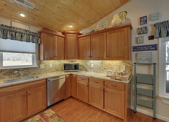 - Interior Features: Pantry, Vaulted Ceiling, Window Treatments, Ceiling Fan(s), Walk-in Closet(s), Drywall, Washer/Dryer Connection, Smoke Detector, Insulation, Cable TV, Cable High Speed, Master on Main, Laundry on Main, Wood Ceilings, Granite Counter Tops, Double Vanity