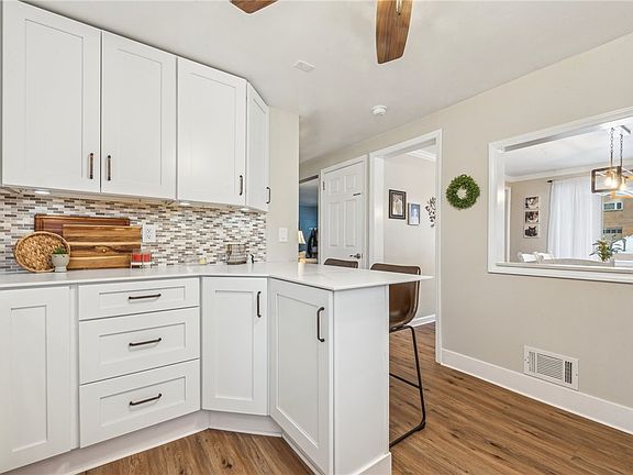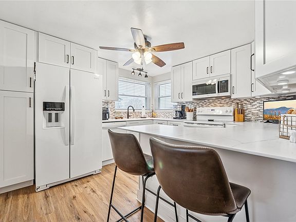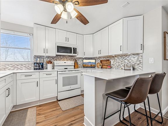 Impeccable and move-in ready, this charming level-entry Cape Cod home boasts a spacious covered front porch, perfect for enjoying your morning coffee. Step inside to a stunning new custom BKG-designed kitchen featuring timeless white cabinetry, a breakfast bar peninsula, soft-close drawers, pantry with sliding shelves, backsplash & under-cabinet lighting. Both baths have been tastefully updated, showcasing beautiful tile shower & tub surrounds. The first floor shines with updated LVT flooring, offering a modern & durable finish. The newly finished walk-out game room, complete with an electric fireplace, provides the perfect space for entertaining or relaxing. Outdoors, you’ll find a covered rear patio, level backyard w/ handy storage shed, concrete driveway & refreshed landscaping. Energy efficiency is a priority with new windows(2021), added insulation in the walls and attic(2023), and updated furnace(2013) and A/C(2024). With meticulous updates throughout, this home truly has it all!
