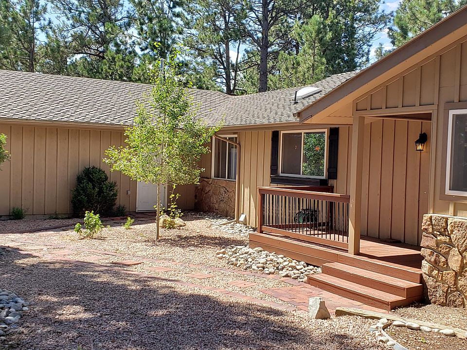 4 BEDROOM 4 BATH ONE LEVEL HOME IN MONUMENT. LARGE MASTER BEDROOM AND 5 PC BATH WITH A JETTED TUB, THERE IS A SECOND MASTER BEDROOM WITH 3/4 BATH. IT HAS A LARGE GALLEY KITCHEN WITH A BREAKFAST BAR, A LARGE DINNING AREA WITH WOOD FLOORS THAT WALKS OUT TO THE LARGE DECK. LARGE LIVING ROOM HAS A WOOD BURNING FIREPLACE. KITCHEN HAS SIDE BY SIDE REFRIGERATOR BUILT IN OVEN AND MICROWAVE, DISHWASHER, DISPOSAL , AND A BUILT IN GAS COOK TOP. WASHER AND DRYER ARE INCLUDED. THE HOME HAS A WHOLE HOUSE FAN WITCH WILL KEEP IT COOL IN THE SUMMER. THERE IS A 2 CAR OVER SIZED GARAGE WITH BUILT IN DOG KENNEL AND LOTS OF STORAGE. 2 WATER HEATERS TO GIVE YOU LOTS OF HOT WATER. THIS IS A BEAUTIFUL TREED CORNER LOT BACK YARD HAS A HORSE SHOE PIT. LARGE DRIVEWAY FOR EXTRA PARKING.