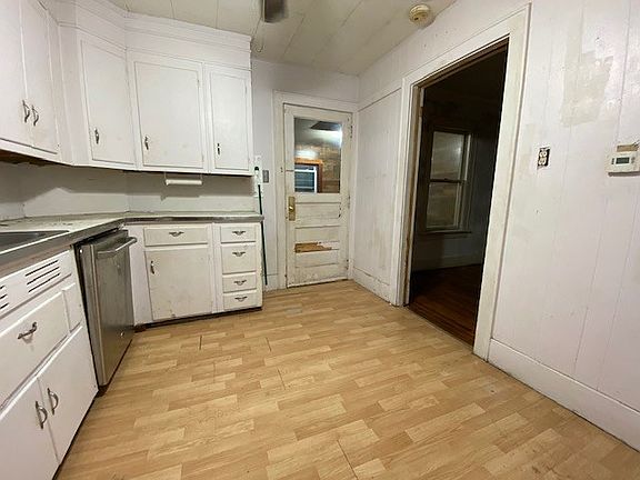 Great starter home or investors take a look. Has some nice updates outside. New siding, roof, both the home and garage, windows including the basement, gutters and downspouts in 2018, electrical from pole to home and circuit box. Plus wooden fence around the back yard which includes a large 11,000 gallon above ground pool with all attachments. Inside nice sized kitchen with stove and dishwasher staying. The entry has a area that is for an extra place to bunk out at night. Then the basement is where the laundry hookups are and nice area for adding work area or living space. No egress window however. Single garage has been sided and roofed, but has to have some work done on floor before the jacks are released.
